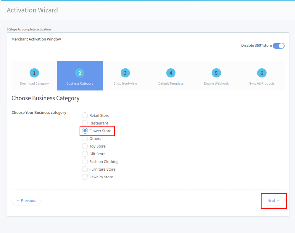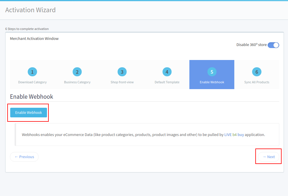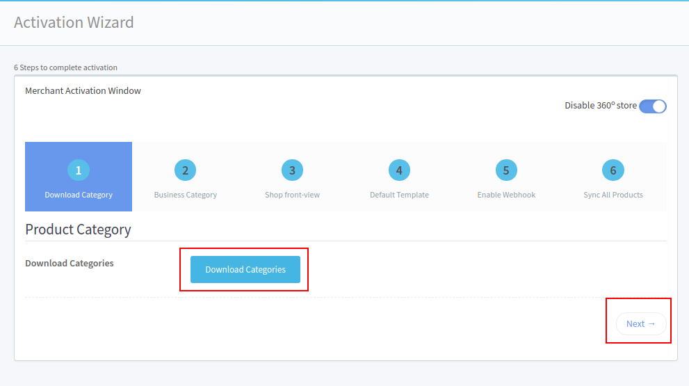 11. When you enable 360 view, you will have 6 steps activation, In the 1st step click the download Categories button, Once it is finished click the 2nd step