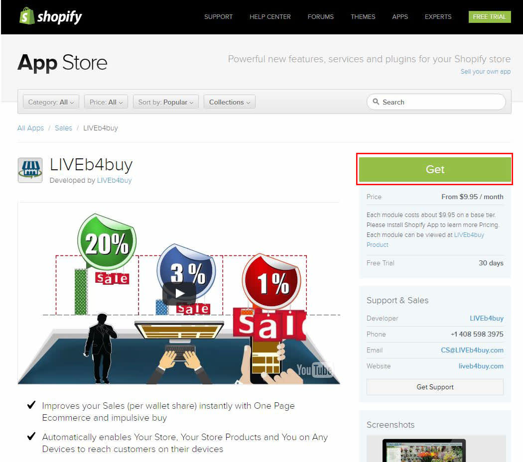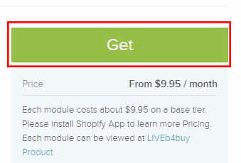 1. LIVEb4buy Apps Installation @LIVEb4buy (https://apps.shopify.com/liveb4buy) URL and login to Shopify Store. Click the GET